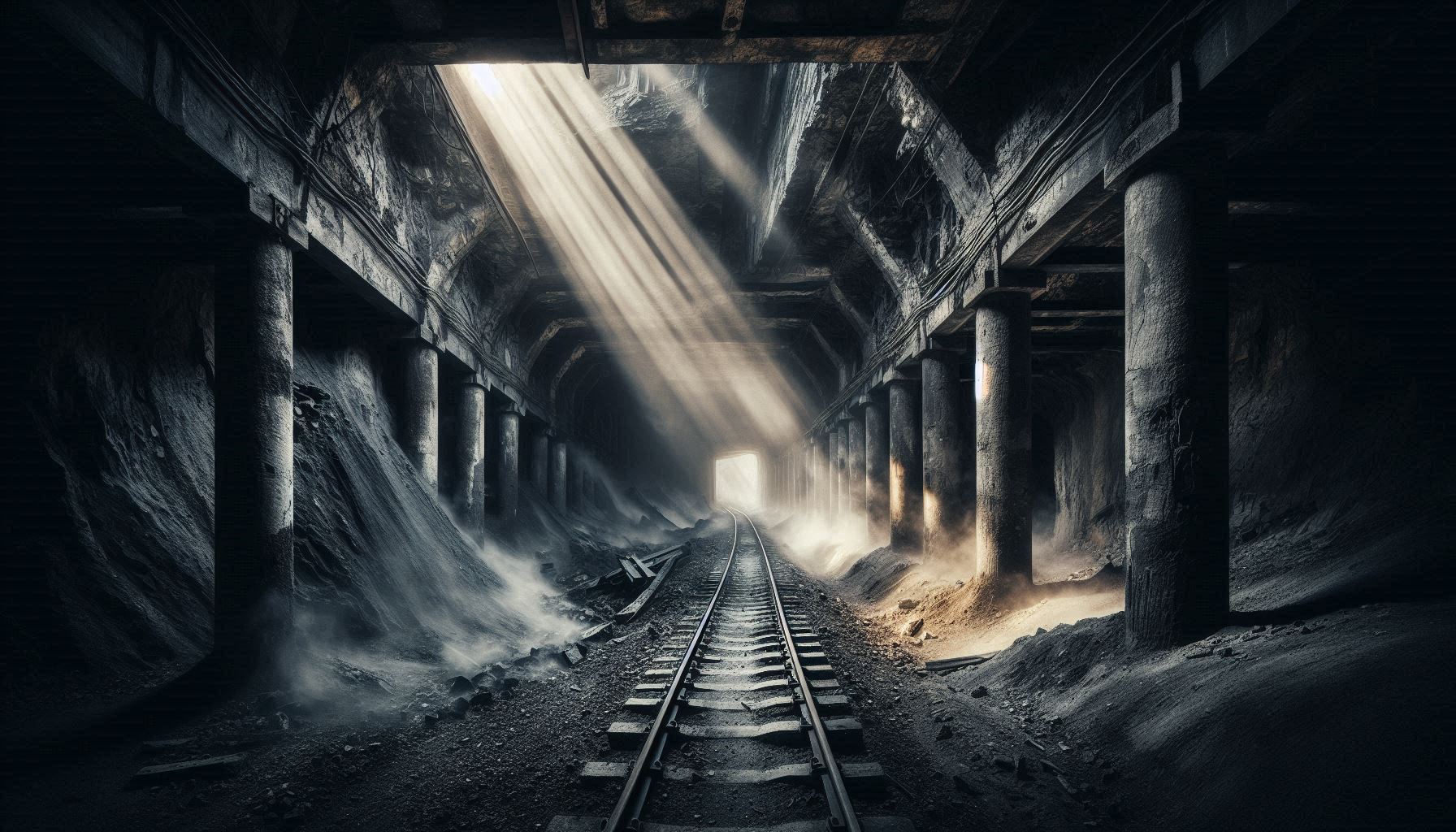 O lugar é um labirinto de túneis abandonados. Trilhos enferrujados cortam o chão de terra batida. Pilares de concreto rachado sustentam tetos baixos que parecem querer desabar a qualquer momento. O ar é pesado. Enxofre. Terra úmida. Algo podre que não deveria estar ali.