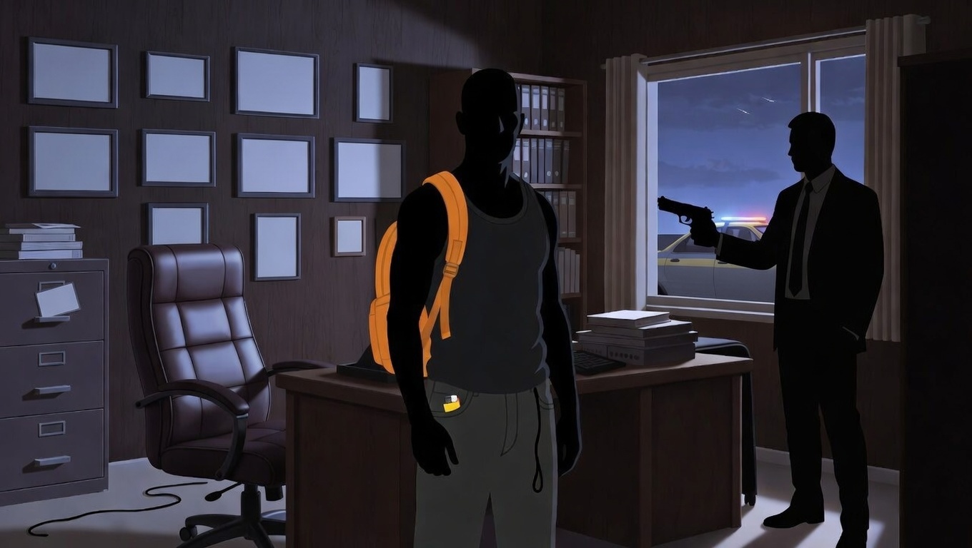O policial pega. Abre. Olha. É um currículo de verdade. Nome de Jota. Experiência inventada. Formatação ruim.